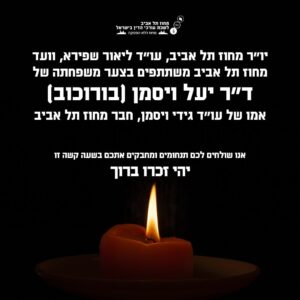 יו״ר מחוז תל אביב, עו״ד ליאור שפירא, וועד מחוז תל אביב משתתפים בצער משפחתה של ד״ר יעל ויסמן (בורוכוב)