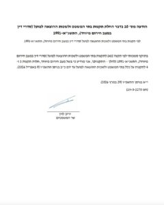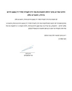 הארכת מצב החירום בבתי המשפט, לשכות ההוצאה לפועל, בתי הדין לעבודה, בתי הדין השרעיים ובתי הדין הדתיים הדרוזיים, עד ליום חמישי, כב' בניסן התשפ"ו, 9 באפריל 2026 (כולל).