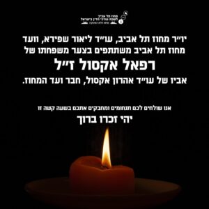 יו״ר מחוז תל אביב, עו״ד ליאור שפירא, וועד המחוז משתתפים בצער משפחתו של רפאל אקסול ז״ל.