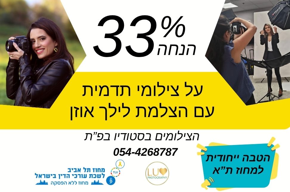 הטבה ייחודית של 33% הנחה על הזמנת צילומי תדמית
