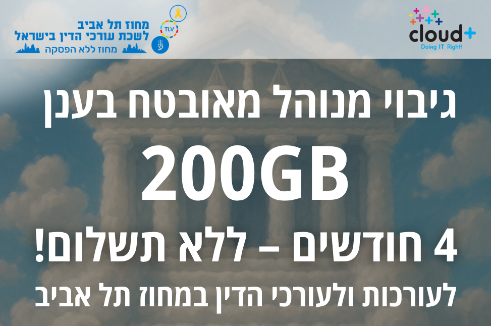 הטבה ייחודית לשירותי גיבוי מאובטח בענן ל-4 חודשים ללא תשלום