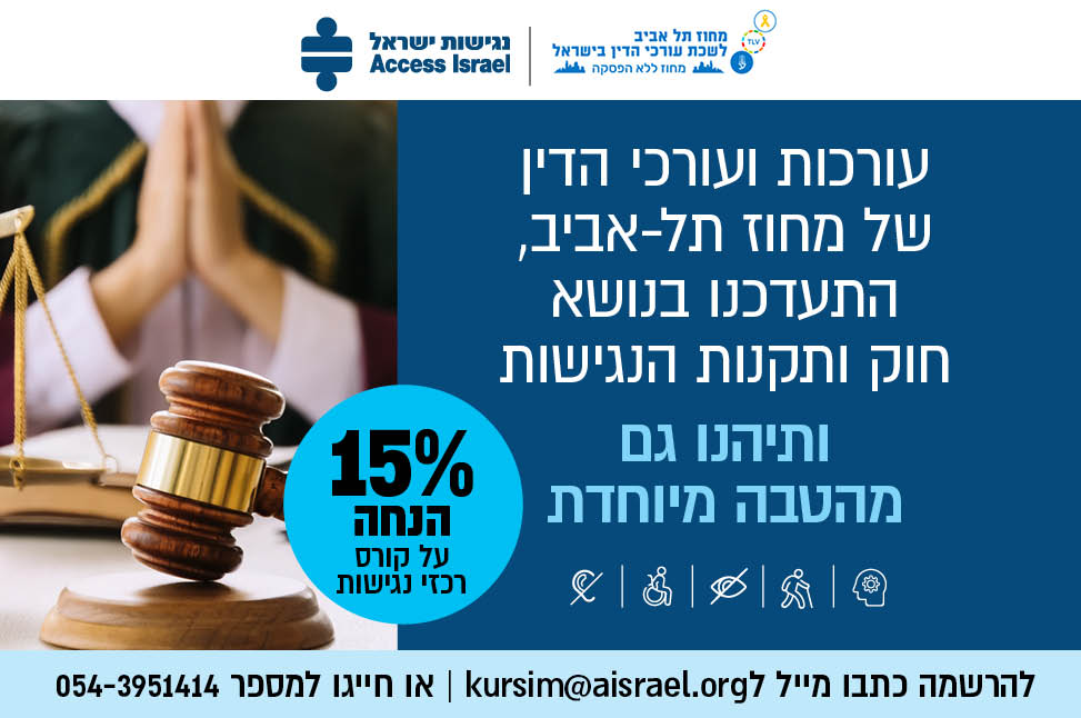הטבה ייחודית של 15% הנחה על קורס רכזי נגישות